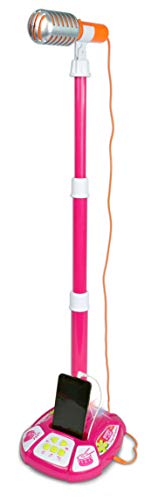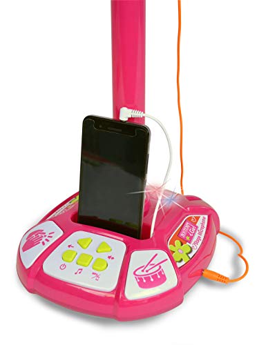 Microfoon met standaard; in hoogte verstelbare microfoonstandaard; 12 demosongs; 5 geluidseffecten; 5 slaggewichten; lichteffecten; verbinding met een MP3-speler (smartphone, iPod, cd-speler) – ingebouwde kabel; vereist: 3 batterijen van 1,5 V (niet inbegrepen); afmetingen: 195 x 225 x 1030 mm