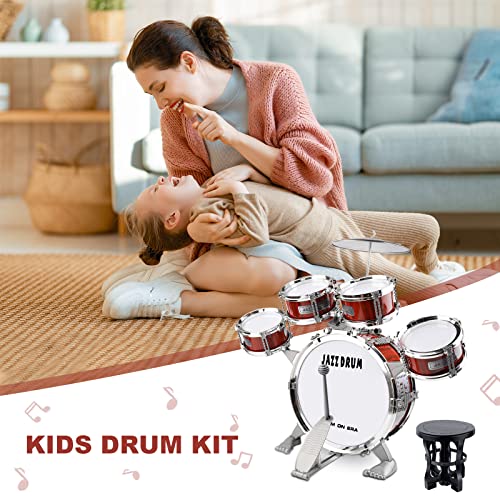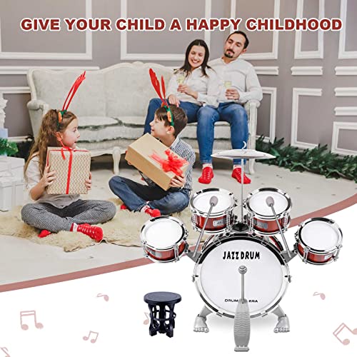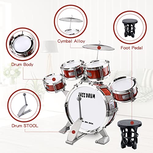 m zimoon Slagwerk voor kinderen, drumset, jazztrommel, peuterspeelgoed, 5 trommels met kruk, pedaal, muziekinstrument…
